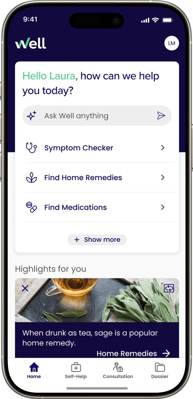 We are a start-up founded by industry leaders. Well is a joint venture between CSS, Medi24, Visana, DocMorris, Galenica, and Swiss Medical Network. We have joined forces with our partner firms to bring Swiss healthcare into the digital future.